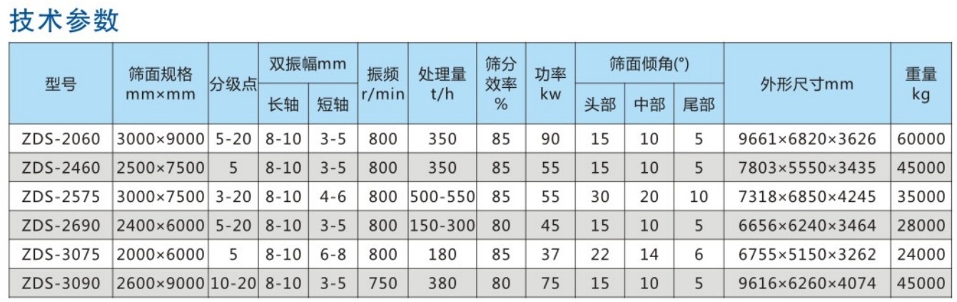 ZDS系列椭圆等厚筛适用于冶金行业的烧结矿、烧结球团、矿山行业的矿石分级,煤炭行业分级筛分作业。和同规格的其它类型的筛机相比,处理量更大、筛分效率更高。是大型烧结厂、球团厂、选矿厂、选煤厂、洗煤厂大型振动筛,是国外引进大型振动筛的理想替代产品。